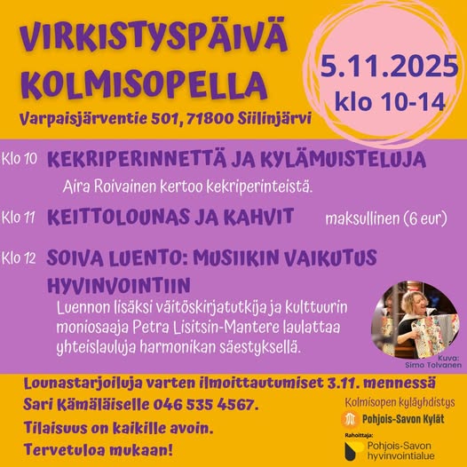 Virkistyspäivä (Pohjois-Savon Kylien projekti) ke 5.11.2025 klo 10.00-14.00